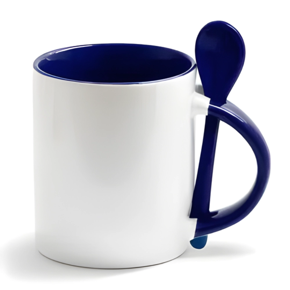 Caneca de Porcelana com Alça e Colher c/ Interior Colorido 325ml – Azul