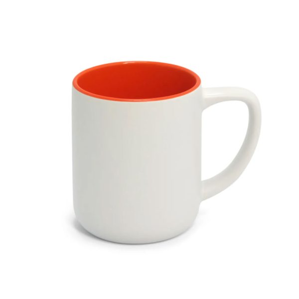 Caneca Cerâmica Branca para Sublimação Matte com Interior Laranja – 325ml
